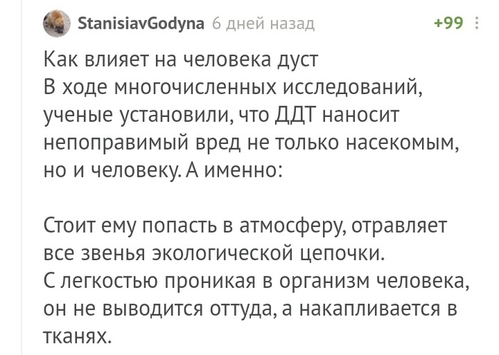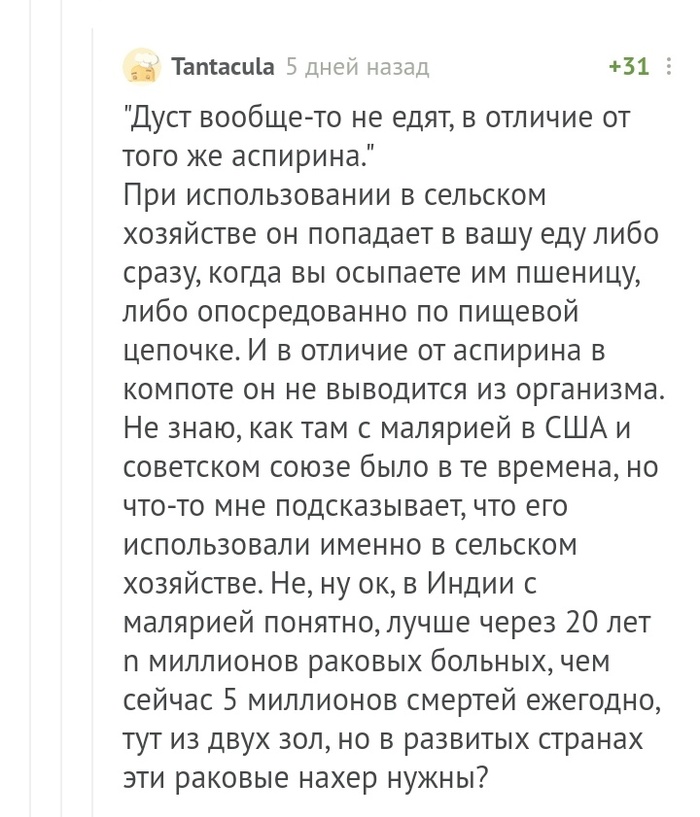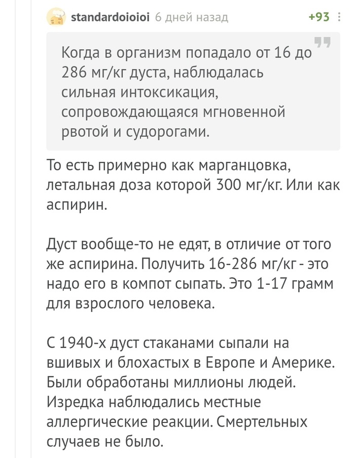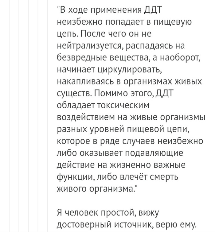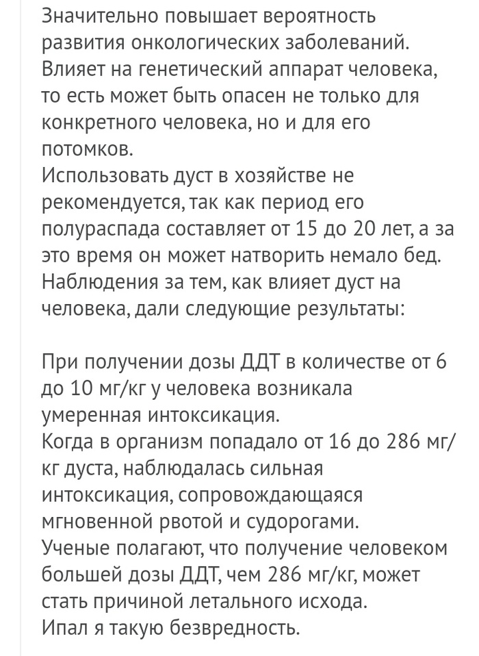 Достоинство ДДТ заключалось в том, что оно не только моментально обнуляло всю нехорошую живность на обрабатываемой территории, но и... сохраняло своё действие долгое время.