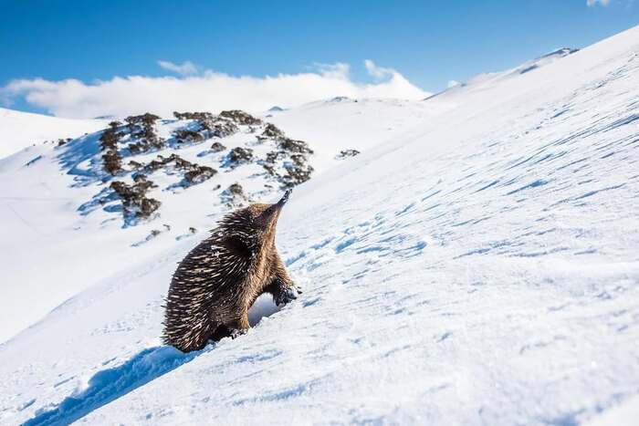 Ехидна Дикие животные Дикая природа Австралия Снег Горы Фотография Длиннопост Яйцекладущие