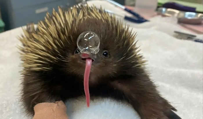 Да, на носу действительно сопля. И для ехидн выдувать носом такие вот малоприятные пузыри – абсолютная норма. Они так охлаждаются, ведь потовых желёз у них нет.