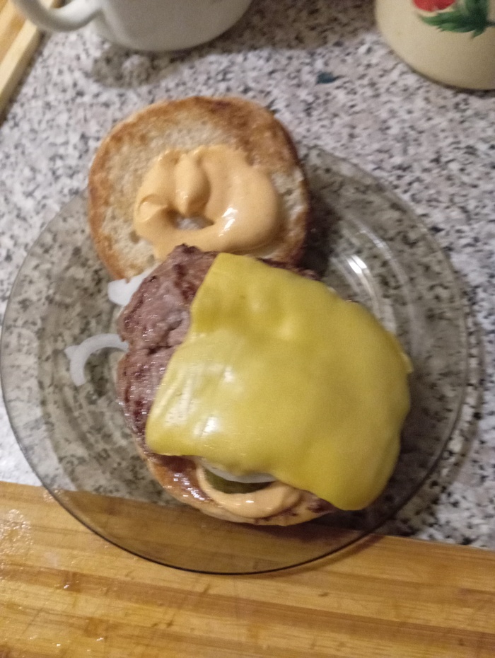 Пойду бургер сделаю себе, поем и спать. Да, салат закончился, но это не мешает мне пожрать.