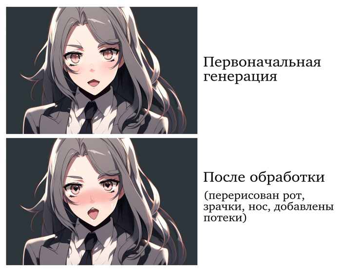 Вы знаете, насколько нейросети равнодушны к правильному количеству пальцев, и даже ушей. Поэтому зачастую мне приходится дорисовывать или убирать пальцы, ноздри, пупки да и вообще подчищать за ИИ всякую шизу.