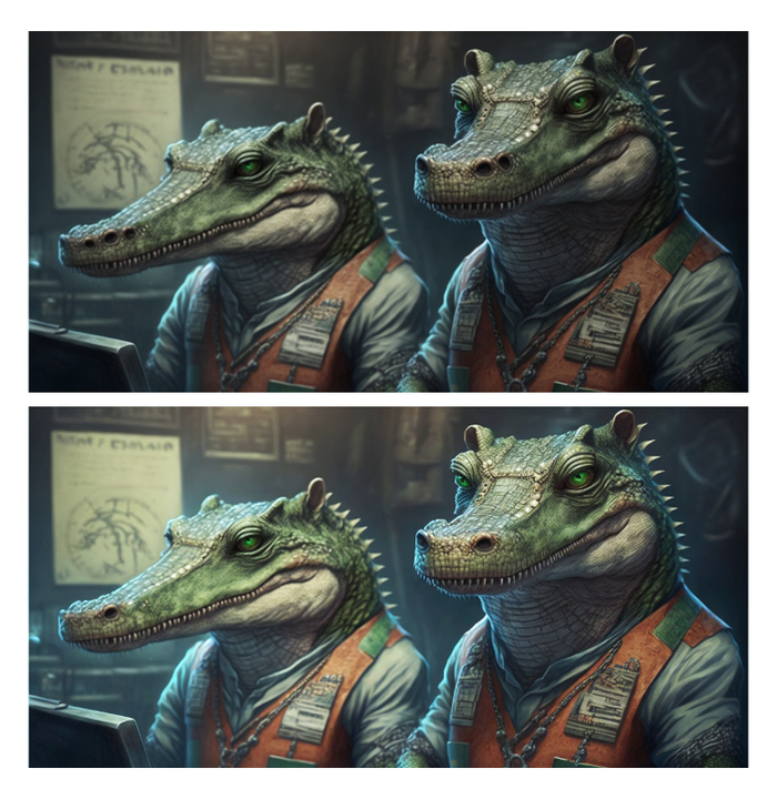 Однажды я хотела сгенерировать рептилоидов, но они вышли СЛИШКОМ рептилоидами, смотрите сами... Пришлось немного "успокоить” их инопланетность в сторону обычных ящериц :)