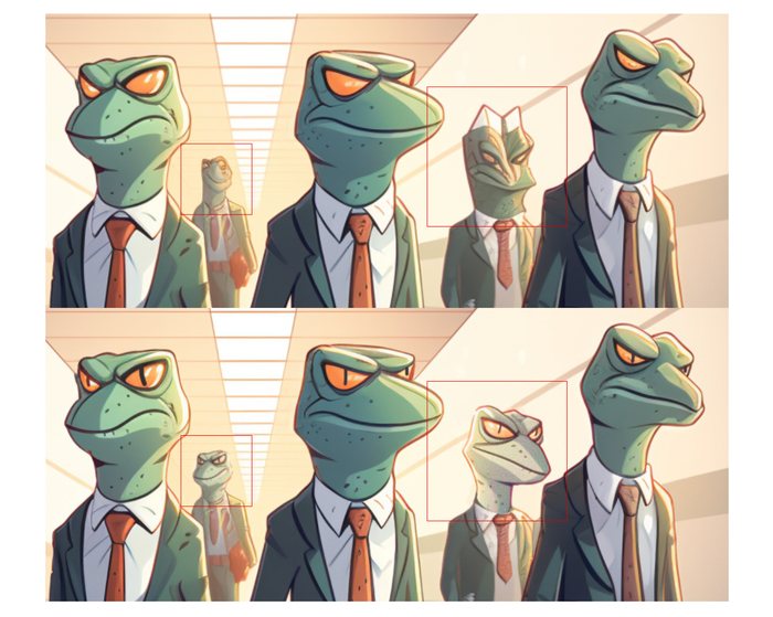 Зачастую глюки в картинке сложно заметить с первого взгляда, нейросеть подсовывает размытое общее впечателние, так что на первый взгляд мозг воспринимает картинку как реалистичную. Чтобы найти ошибки, часто приходится разглядывать каждый элемент по порядку, включив логику: сколько ножек у стула? Сколько дверных ручек? Почему пиджак заправлен в брюки? Почему следователь местами пингвин??