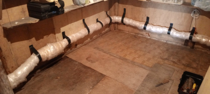 Теперь зимой вода в трубах не замёрзнет. Мы всё обмотали, укрыли. Зима, мы готовы! (Хотя нет, не готовы, но притворяемся.)