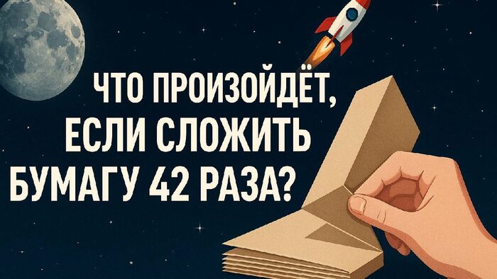 После 42 сложений наш лист станет толщиной 439 тысяч километров. Это больше, чем расстояние от Земли до Луны.
