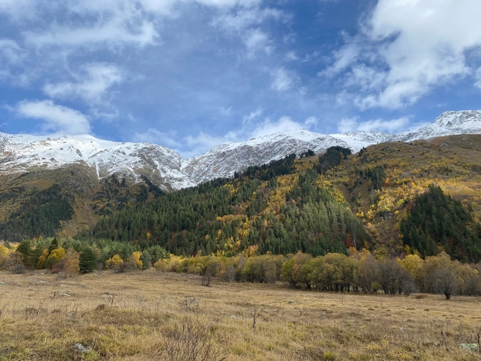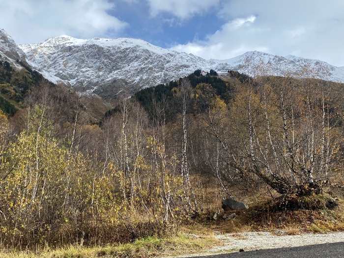 В конце октября заповедник был открыт, людей мало. Было тепло, на макушках гор уже лежал снег.
