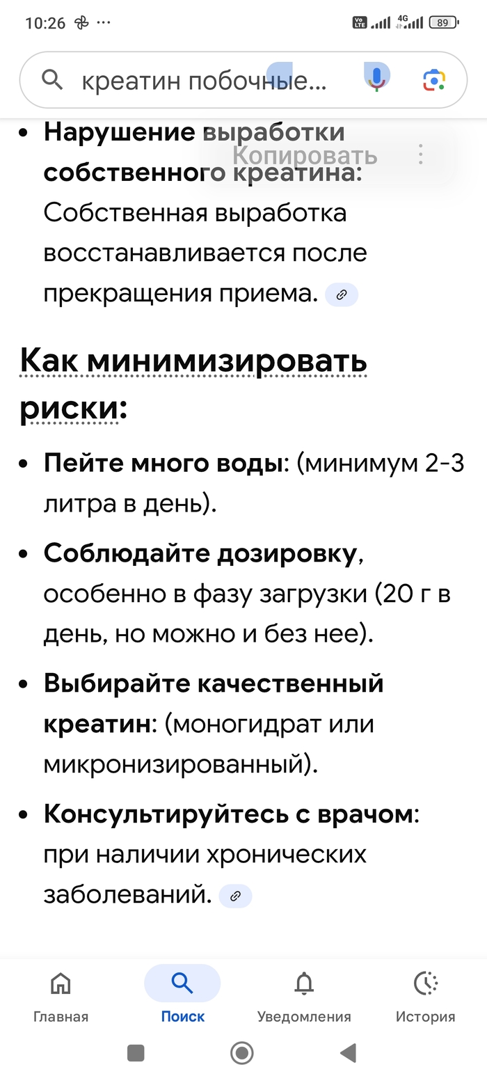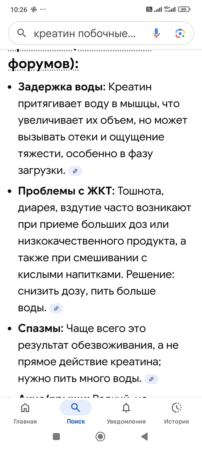Ну и упоминание в скриншоте о приеме 20 грамм в день креатина в период "загрузки" мне кажется это только для спортсменов, лично я остановился на 5 граммах, пробовал снизить дозировку до 2.5 грамм, но показалось, что эффект от приема снижается.