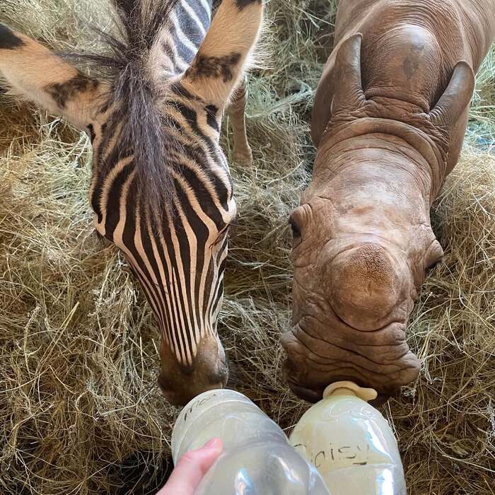 Когда носорог Дейзи была спасена, Модьяйди, осиротевший жеребенок-зебра, оказался для неё спасательным кругом, фактически они стали лучшими друзьями друг для друга.