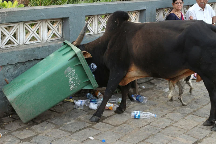 Но есть у такого супер-статуса и свои недостатки, которые причиняют много проблем как людям, так и животным. Например, старая корова по поверьям приносит несчастья в дом, потому индусы отпускают животину в свободный путь, дабы она скончалась где-то еще. И вот коровы-бомжи заполняют городские улицы, мешают машинам и жрут всякую дрянь со свалок, умирая пачками.