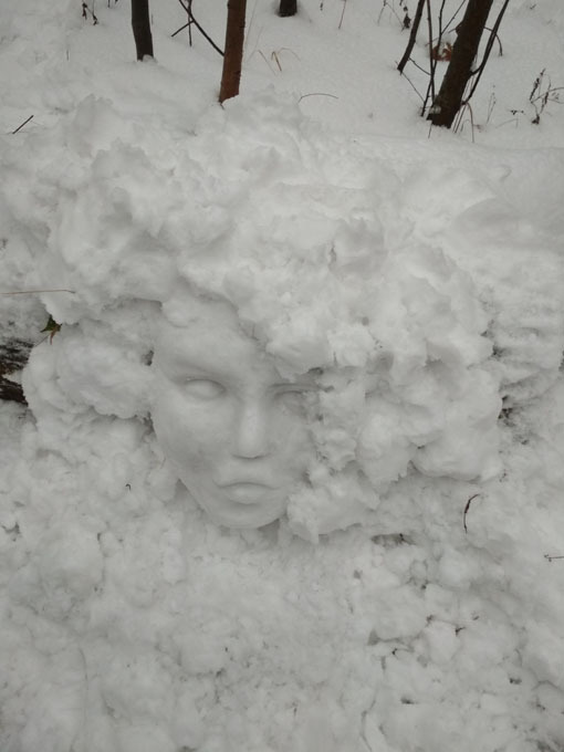 Вот и снега дали. Быть тогда снежному сериалу. Когда гуляем с детворой в лесу, любим чего-нибудь такое залепить, то дракона или крокодила трехметрового, а то портретную галерею.