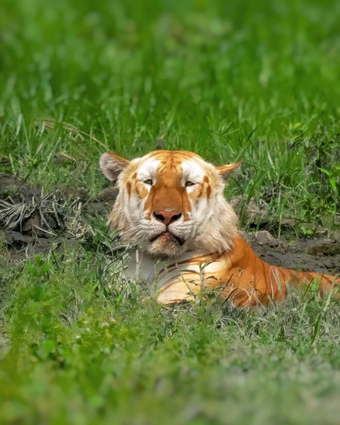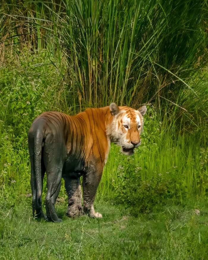 Фотограф дикой природы Джойдип Чоуби (Joydip Chaubey) сделал снимки «золотого» тигра в национальном парке Казиранга в Индии.