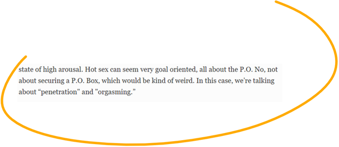 Жаркий секс - говорит, - это обычно больше про P.O. Нет-нет, не про P.O. как американское сокращение абонентского ящика, мы тут вообще-то говорим про Penetration and Orgasming, но зачем-то изобретаем аббревиатуры, как зумеры