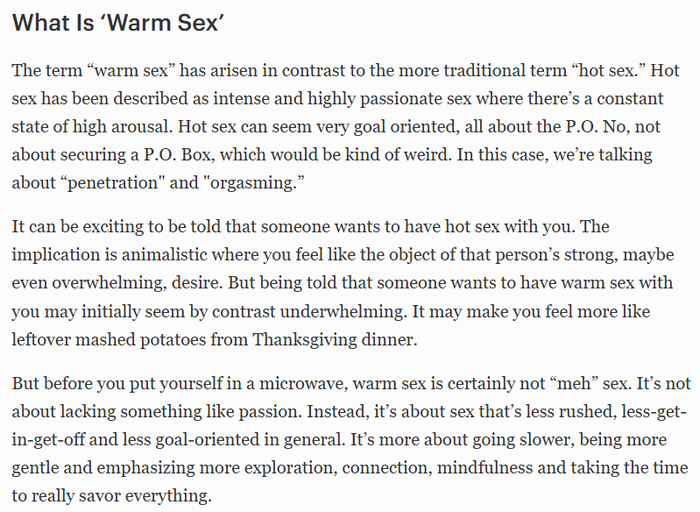Если вам интересно почитать что такое этот ваш warm sex который сейчас на хайпе, вот оригинальная статья: - клик -