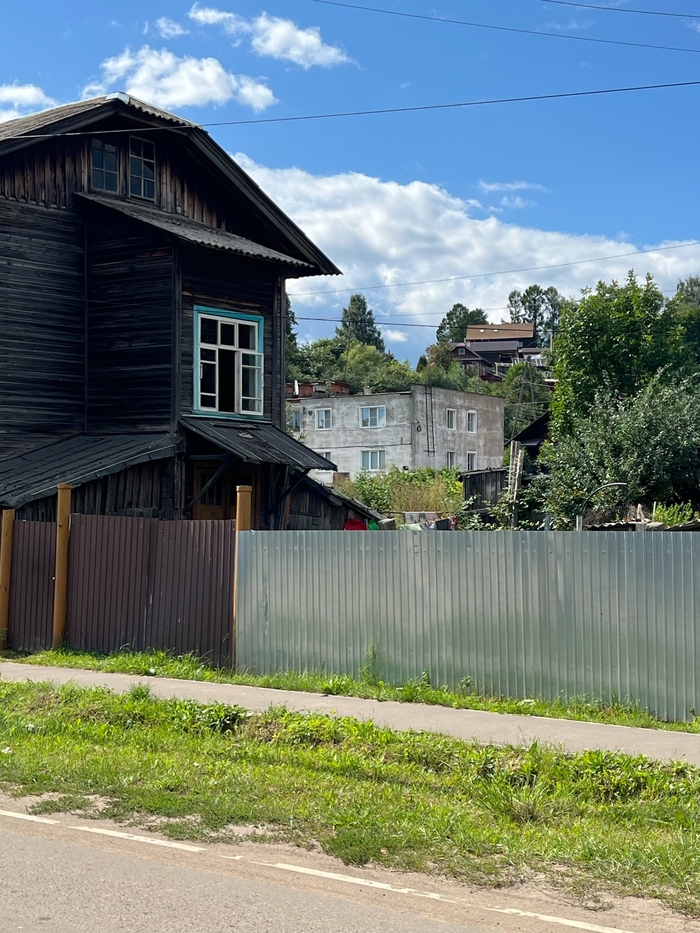 Поскольку подход «посмотреть центр и написать лонгрид» это явно не про меня, то решил забуриться во всевозможные секторы частной застройки, которые обжимали городской центр по периферии. Для начала отправились на юг – поискали красивые наличники. Таня по дороге отметила, что рядом с центром очень богатые частные дома (деревянные), которые затем сменяются пятиэтажками близ фабрик, а за ними – либо деревянные дома попроще (некоторые, судя по всему, брошенные), либо кирпичные особняки в несколько этажей, уже без палисадников, за глухими заборами. В общем, можно проследить время постройки.