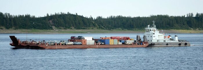 По всей бухте в Игарке раскиданы старые деревянные и металлические баржи, пароходы и теплоходы.