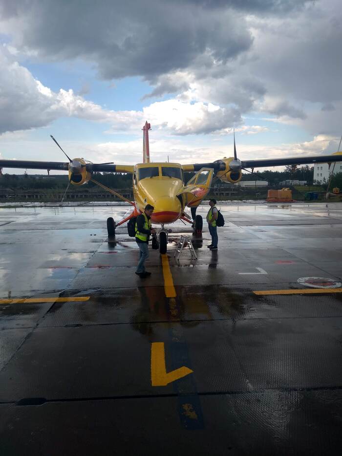 Рано утром к 6, мы выдвинулись на аэровокзал Черемшанка. Он насколько я понял в основном используется для частных (чартерных) рейсов. Я выгрузил свои баулы-коробки, поставил на весы и получил перевес. Какую то необходимую часть удалось распихать среди коллег, но оставался ещё целый ноутбук, коробка с картриджами на принтер и другая мелочь, на которую как оказалось не оформлен ДОПУСК! Я позвонил сотрудникам офиса, слава Богу, что с третьего раза удалось добудиться человека. Который не знал что делать. Я ответил что придётся оставить всё в аэропорту, ведь вы, "уважаемые" даже сопровождающего с офиса не отправили, так сказать ответственного по посадке/отправке сотрудников на объект. На что человек попросил что-нибудь придумать на месте. Ну я и подходил к каждому, описывая свою ситуацию и просил забрать перегруз себе и довезти хотя бы в город.