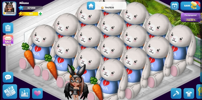 Помимо донатов в саму игру, были покупки виртуальных плюшек у других игроков. Вот эти зайцы, которых вы можете наблюдать на скрине внизу, тоже покупались за 150р/штука