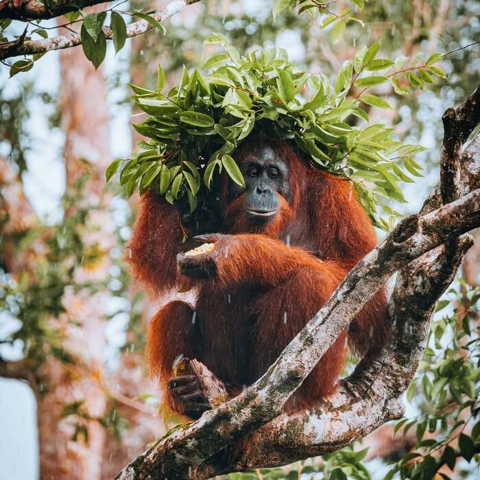 Орангутан Приматы Обезьяна Дикие животные Дикая природа Индонезия Дождь Фотография