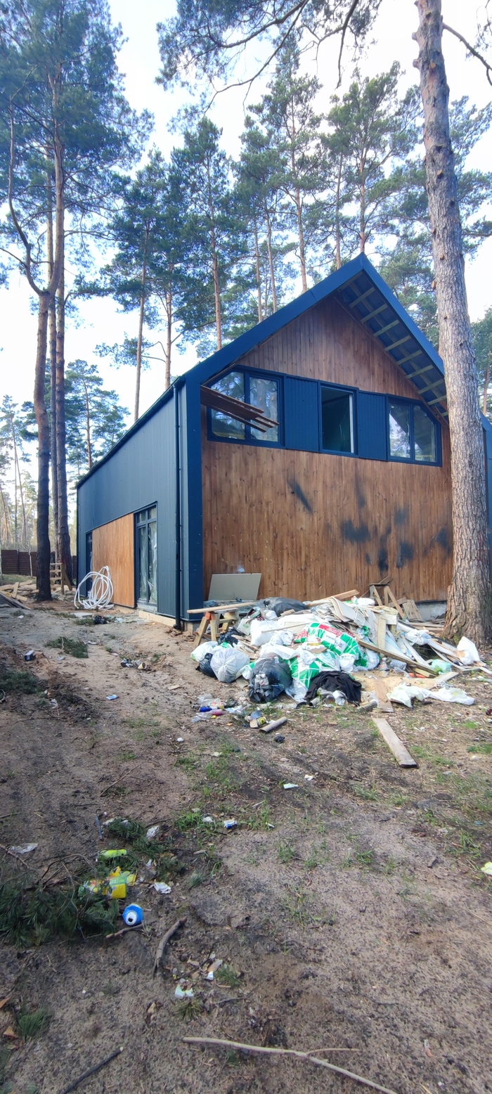 Но потом настало 24 февраля и я немного поплачусь. Как я писал в предыдущих постах, мы с женой уехали на день раньше из Киева, а работники которые строили дом, уехали уже после(отдельное спасибо им за то что когда уезжали, закрыли пленкой все окна и двери. Мы долгое время не знали что с нашим домом, учитывая ожесточенные бои предполагали что он мог сгореть, или же его могли разбомбить. Когда наконец-то получилось вырваться в Ирпень поехал посмотреть что с ним: