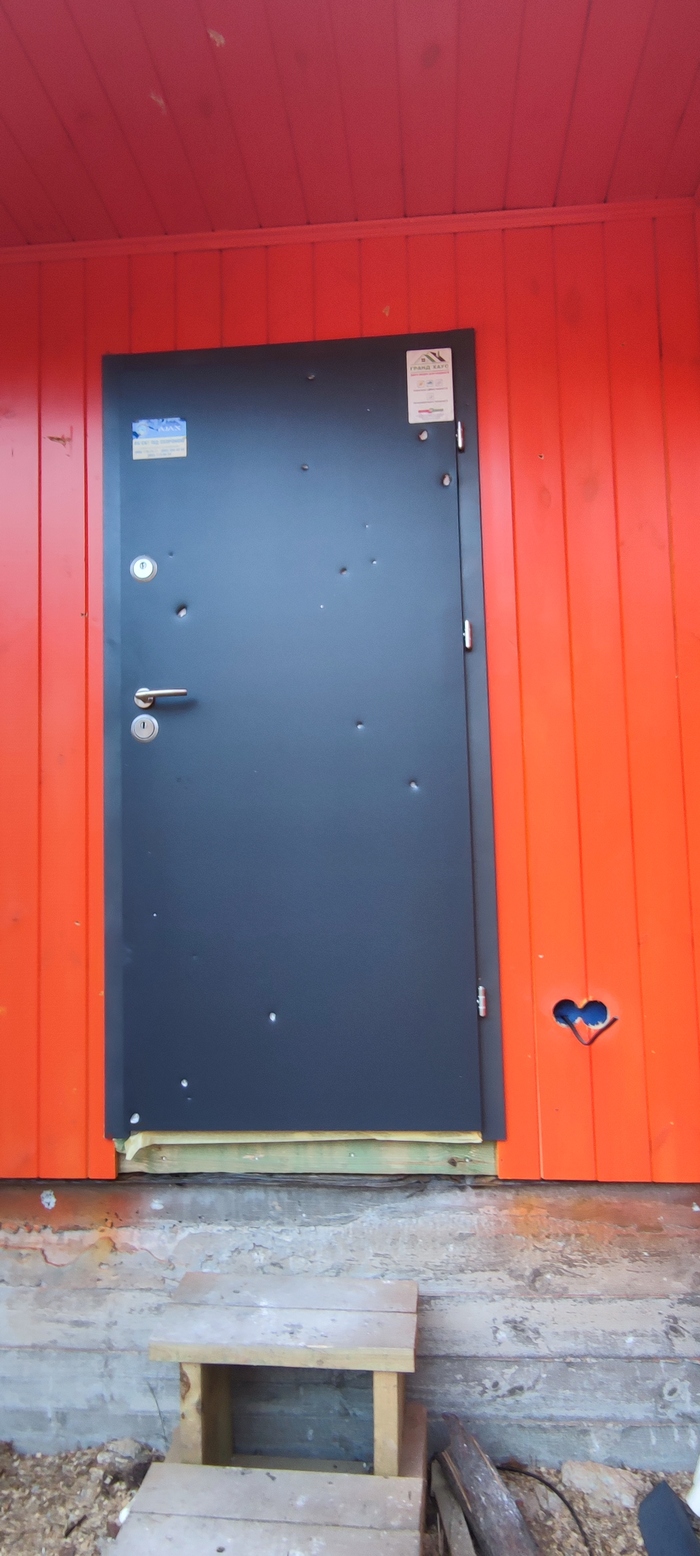 Глядя на входную дверь складывается ощущение что кто-то специально стрелял, кто разбирается, это от осколков или пулевые отверстия?
