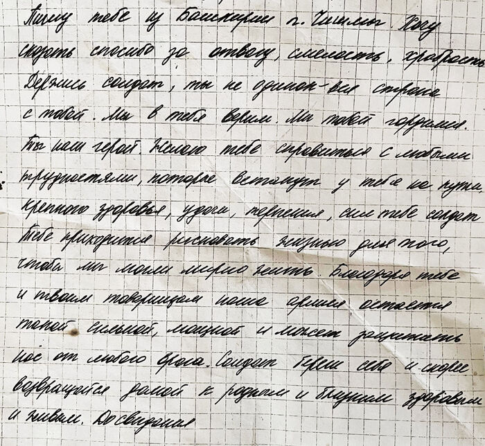 В фотокопии письма содержалась мотивация: «Солдаты, берегите себя и скорее возвращайтесь домой к своим родным и близким здоровыми и живыми», — говорилось в нем. "До свидания."