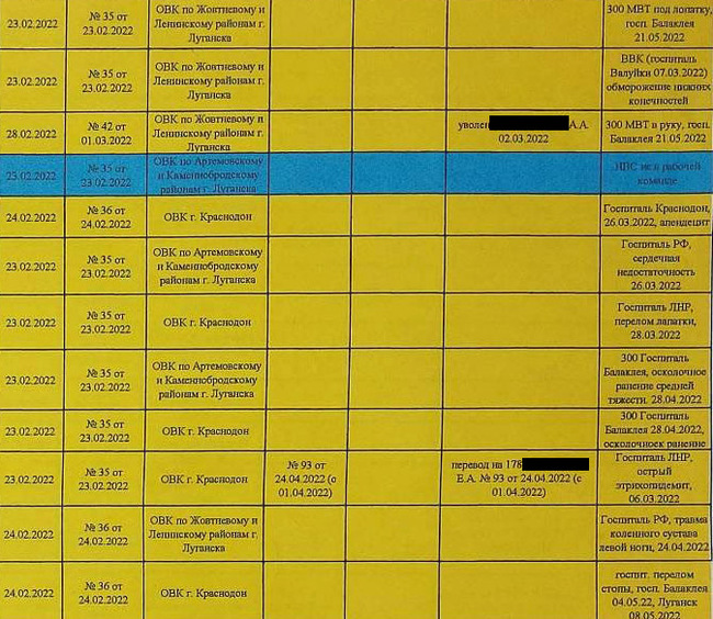 Выписка из списка военнослужащих 202-го стрелкового полка Луганской Народной Республики.