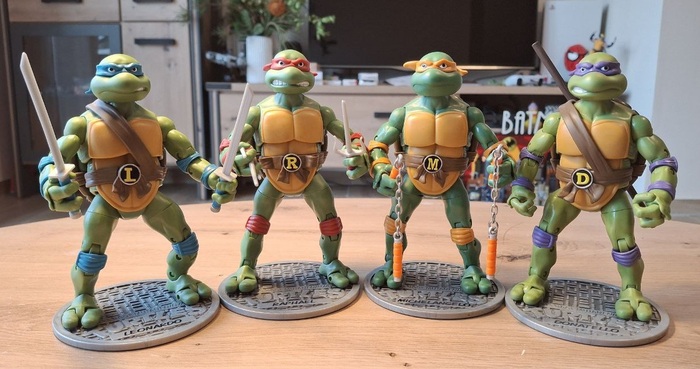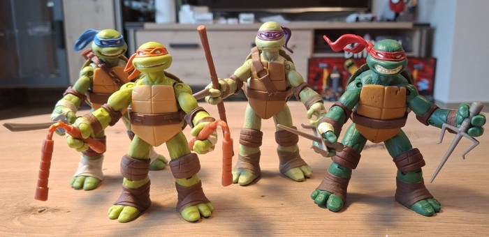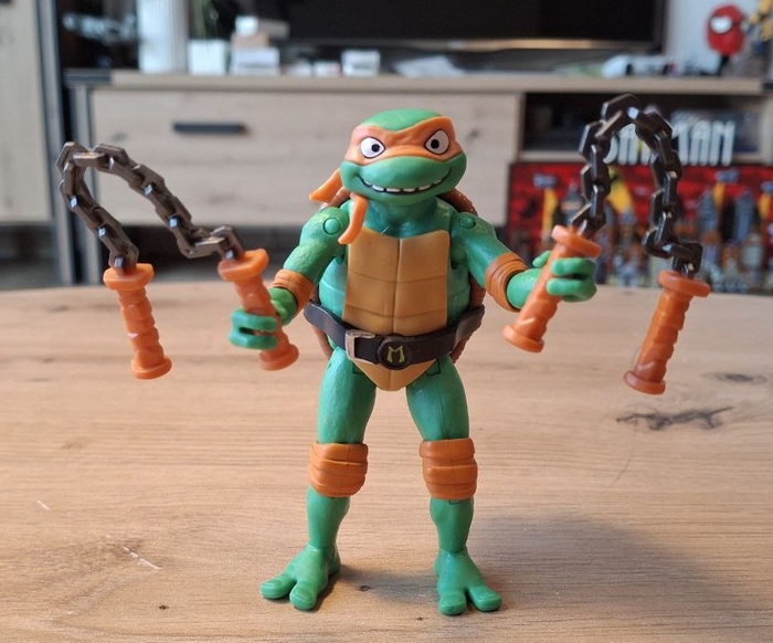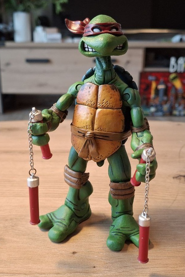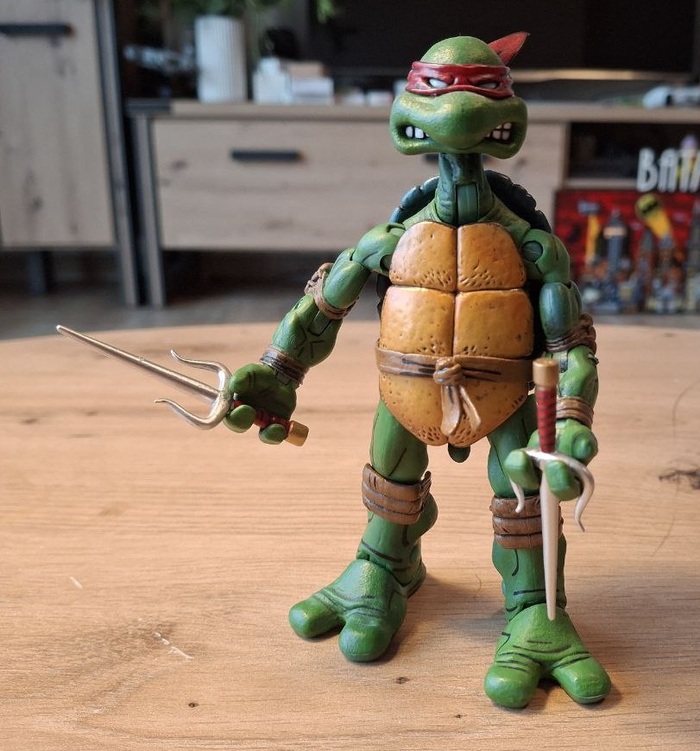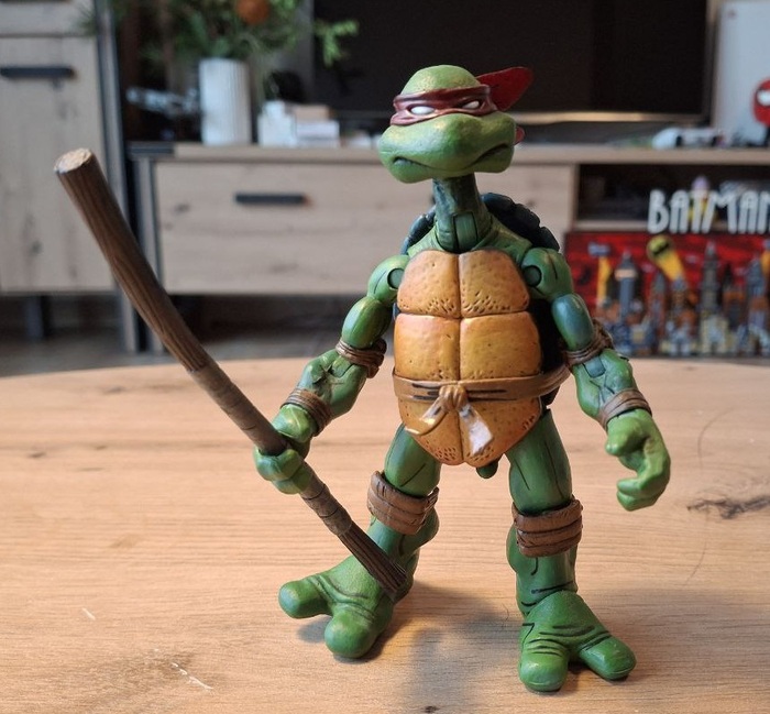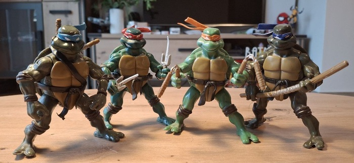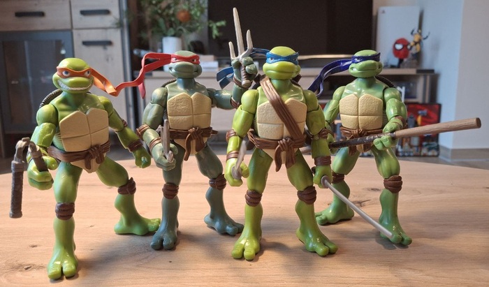 Пока я так и не осчастливил себя фигурками по классическому фильму 1900-го года, с которым у меня тоже произошёл довольно забавный случай, когда мама привезла мне из видео проката кассету с «Черепашками-ниндзя» и я, предвкушая яркий и красочный мультик, был жесточайше обломан увиденным на экране мрачноватым фильмом. Но со временем, мне это фильм очень зашёл и сейчас я нет-нет да и пересматриваю его иногда. Что касается фигурок, я нашёл шикарные на «Амазоне», но что-то пока не готов отдать 56 евро за фигурку, так что сижу и жду вдохновения.