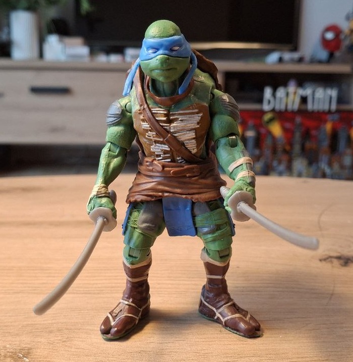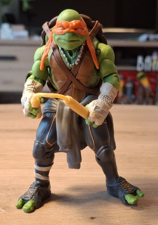 В том же 2014-м году вышел первый за долгое время игровой фильм про черепашек. Сам фильм мне, если честно, не зашёл от слова «совсем», то, что Майкл Бей сотворил с моими любимыми героями просто непростительно. Такое ощущение, что он ни разу не читал комиксы и не смотрел снятые до этого фильмы-мультфильмы, а решил рубануть очередных «Трансформеров» без капли логики, смысла и уважения к оригиналу. Разве что визуальные образы черепах были достаточно интересными (ну за испключением их двухметрового роста). Но раз уж у меня уже начала формироваться коллекция, я прикупуил фигурки и по этому фильму. По итогам, фигурки оказались такими же несуразными, как и сам фильм, толком ничего не движется, устойчивости почти ноль, да и качество получилось весьма спорным. Но для коллекции пусть будут, чего уж тут.