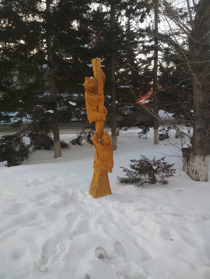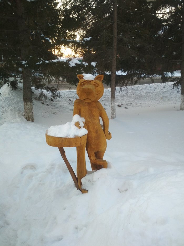 Вот такие резные фигуры увидел в Калачинске, Омская обл. Извините за качество. Фотографировал на топор.