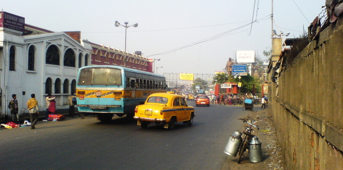 Иду за ним по щиколотку в воде сначала вдоль улицы, потом резко сворачиваем в узкий, в одного человека, проход между зданиями. Я не чувствую опасности. В другой ситуации вряд ли пошел бы за незнакомцем ночью по этому району. Но не сегодня. Выходим на параллельную улицу и оказываемся на перекрестке. По моим прикидкам, мы где-то в районе Талтала. Два желтых амбассадора под единственным в пределах видимости работающим фонарем. Желтые амбассадоры - фирменный транспорт калькуттских таксистов. Эти машины, модельный ряд которых не менялся с пятидесятых годов прошлого века, уверенно чувствуют себя на подтопленных улицах и могут спокойно передвигаться по мелководью, песку и сугробам.