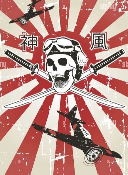Обратил внимание на раскраску крыльев. Что она мне напоминает? Секундочку...да это же, мать его, грёбаный японский камикадзе!! Со своим символом божественного ветра!