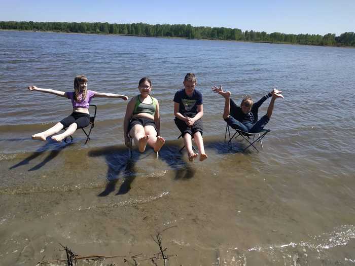9ого - день отдыха, девочки хлопочут вокруг стола, мальчики делают вид, что удят рыбу, дети носятся по берегу и раздувают костер. Все при деле, всем хорошо, на улице жара. Ближе к вечеру достается гитара, квас и вино освежают, дети уже давно босиком носятся по воде. В общем - красота, отличный отдых на природе (немного картину портили пару раз попавшиеся гадюки, поэтому собак старались далеко не отпускать и палатки держать закрытыми).
