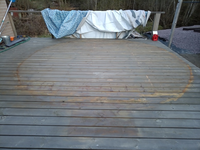 Ну вот и прошло два года, как мы построили террасу. Решили помыть и немного передвинуть бассейн, так как купили для него купол.
