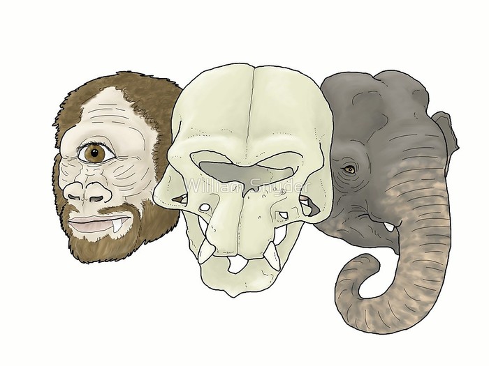На черепе всего одна — фронтальная — "глазница". Впрочем, эти останки принадлежали отнюдь не циклопу, а карликовому слону. Мирные пахидермы — толстокожие толстяки, которые были в несколько раз меньше тех слонов, что мы привыкли видеть в зоопарках. «Глаз» во лбу — отверстие для дыхательных путей, то есть для хобота. Сами органы зрения находились по бокам головы. Весь череп при этом удивительно похож на известные изваяния циклопов — античных и эпохи Возрождения. Аналогичные останки были обнаружены на многих островах в бассейне Средиземного моря: на Сардинии, Мальте, Крите, Родосе и Кипре. Скорее всего, карликовые слоники вымерли незадолго до знаменитого путешествия бесстрашного мореплавателя и появления «Одиссеи» Гомера. В древности тоже откапывали массивные черепа с одной фронтальной «глазницей». 2 тысячи лет назад таких находок наверняка было больше, чем в наши дни. Подобные материальные свидетельства только подкрепляли легенду о свирепых чудовищах.