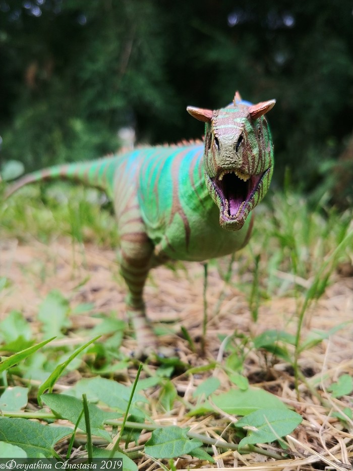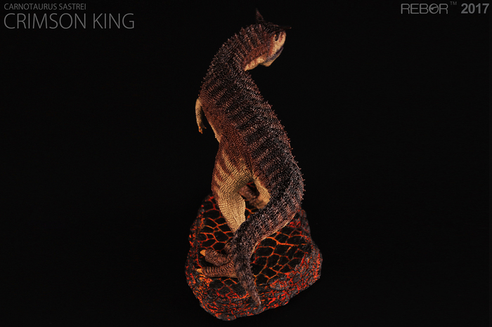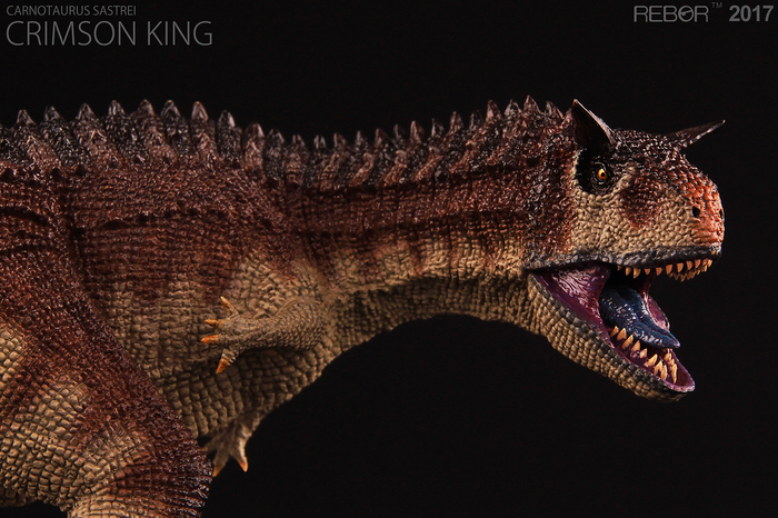 На данный момент фигурка от Rebor является самой детальной моделью этого динозавра, доступной на маркете, на мой взгляд. Как и у других фигурок Rebor, у карнотавра открывается пасть и подставка идёт в комплекте хотя и со слишком травмоопасными для ног живого динозавра потоками лавы.