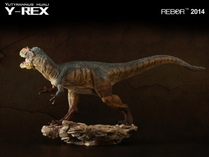 На рассмотрении у нас раннемеловой китайский тираннозаврид. У ранних тираннозавридов было по три пальца на конечностях, которые у более поздних родов редуцировались до легендарных двух. Также у него были мощный носовой гребень и надглазные наросты. Но самая выразительная и, что очень важно, научно-задокументированная особенность ютиранна это наличие оперения, что делает самым большим найденным и подтверждённым оперённым динозавром с длиной в 7-9 метров и весом около полторы тонны. В отличии от большинства реконструкций этого динозавра, команда Rebor не озаботилась покрыть динозавра полностью перьями, а покрыли те участки, что были подтверждены имеющимися окаменевшими отпечатками (шея, лапы, хвост) или находились рядом с ними. Также есть отпечаток перьев рядом с тазовой костью, но отдельно оперённый участок между ног выглядел бы на фигурке, как минимум, странно. Подтверждает ли оперение ютиранна оперение более позднего тираннозавра? Не совсем. Имеются отпечатки чешуи тираннозавра на шее и на хвосте, в тех места, где у ютиранна были перья. Это говорит о том, что со временем тираннозавриды утратили полностью или часть оперения. Возможно причиной этому послужило потепление климата или особенности метаболизма, связанные с увеличением размеров.