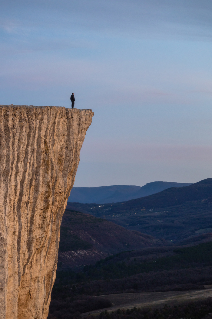 Но все же мы, идущие, осилили наш путь, и пришли к стоянке Бешик-Тау. Откуда направились было к краю обрыва, чтобы посмотреть с него на Тепе-Кермен и окрестности, но свернули не на ту тропу и вышли к караимскому кладбищу, через которое собирались спускаться. Что ж, пришлось подниматься через него наверх. Солнце уже садилось, и это создавало особую околомистическую атмосферу. А еще больше - найденное там криппи-место проведения какого-то загадочного ритуала – среди древних могил были привязаны два зеркала (издали они выглядели как портал среди деревьев. искажающий реальность), вокруг валялось множество книг, в названиях которых упоминались кровь и смерть. Неужели в Бахчике есть какие-то подростки, увлекающиеся оккультизмом? Вот уж никогда бы не подумала. А может это туристы-сатанисты… Жутковато тут ночью такие ритуалы проводить, но наверняка в этом есть что-то, способное притягивать людей особого склада ума и характера.