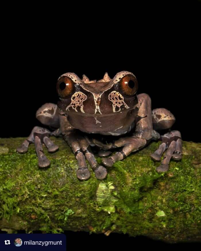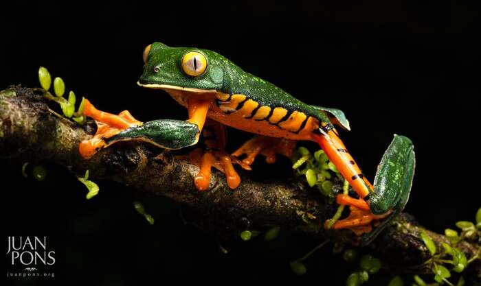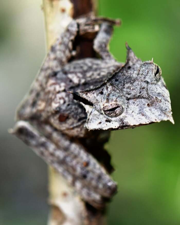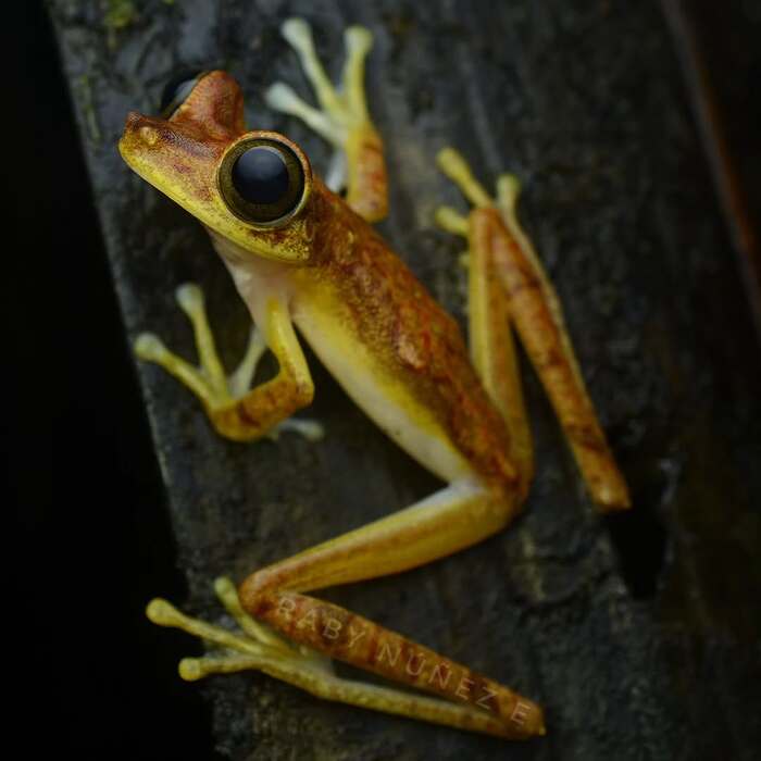 Небольшие ярко окрашенные животные с большими ярко-красными глазами с вертикальными зрачками. Длина тела самок до 7,7 см, самцов до 5,9 см.