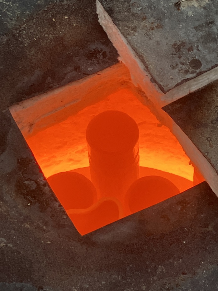 Нагрел до 1050 градусов. Вынул и кинул в опилки, чтобы восстановилось и прокоптилось.