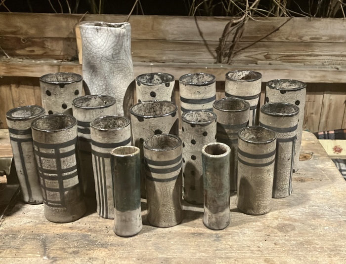 Поскольку стоят тёплые погоды, решил обжечь немного шамотной глины. Слеппил.
