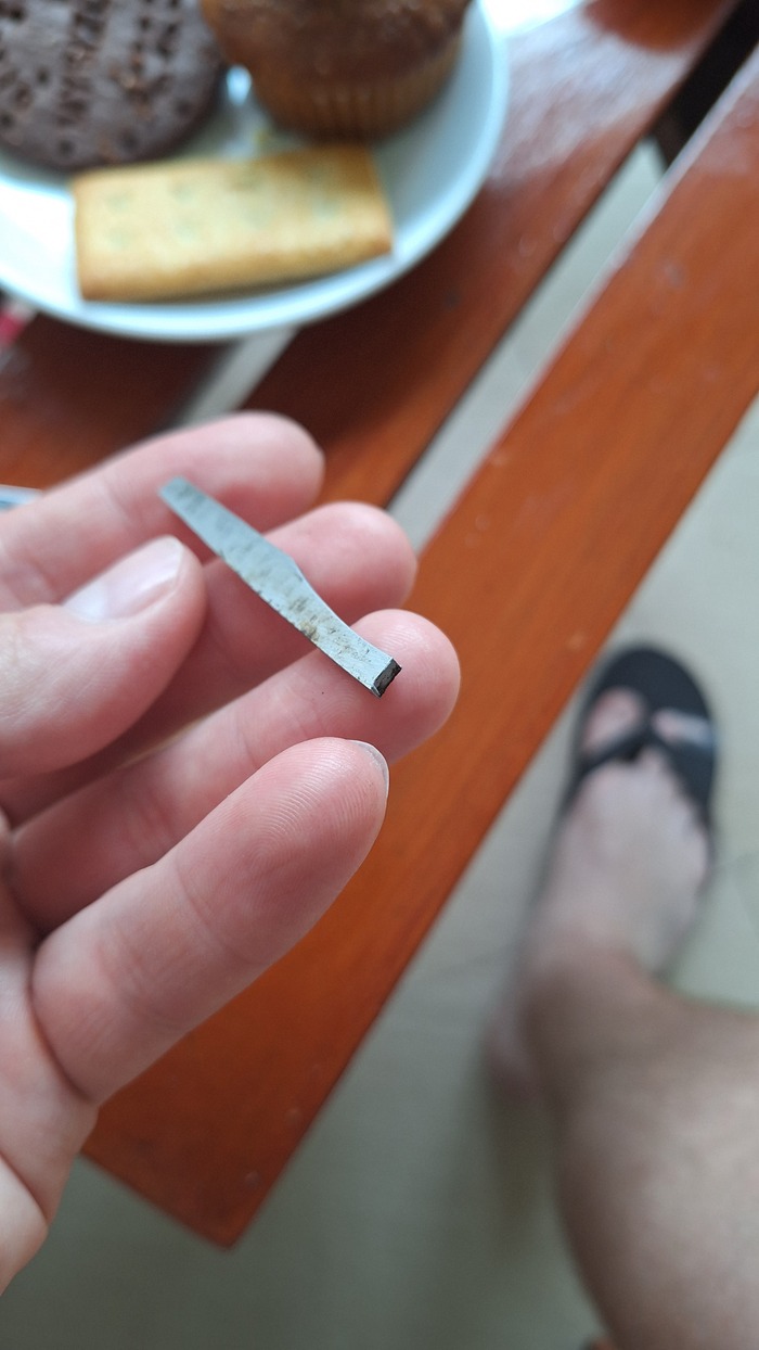 Посмотрел цены в официальных магазинах и у перепродаванов - нашел на Озоне дешевле остальных. Думаю, а какая разница-то? Если ножи хорошие, то индифферентно, кто их продаёт. Ну из заказал. Дальше нет смысла мусолить этот занудный рассказ. Заказал я нож в феврале 2024 года. Ну и особо жизни он не видал, если честно - банки консервные не открывал, винты не выкручивал, провода не зачищал - жил как у Христа за пазухой, в общем и целом. Ну, на Ангаре на рыбалке где-то что-то порезать да на шашлыках каких-нибудь. А всё потому, что в разряд рабочих ножей переехал тот самый, подаренный двадцать лет назад. И дернул меня шайтан взять его нынче в теплые страны в поездку - фруктик какой почистить-нарезать, упаковку открыть, если потребуется. Тоже, короче, особых требований к нему не предъявлялось. Ну и одним прекрасным утром я его открыл, и как выяснилось, в последний раз.