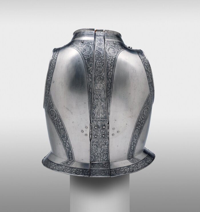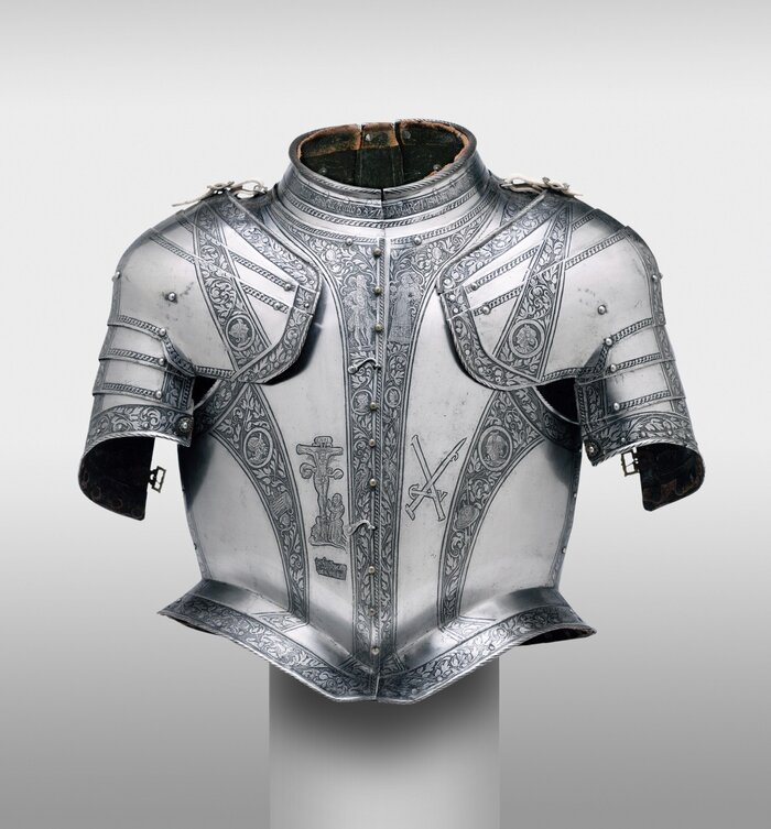 Кираса "анима" в составе доспешного гарнитура (работы Дизедериуса Хельмшмита), принадлежавшего Фернандо Альваресу де Толедо, герцогу Альбе (1507 - 1582).