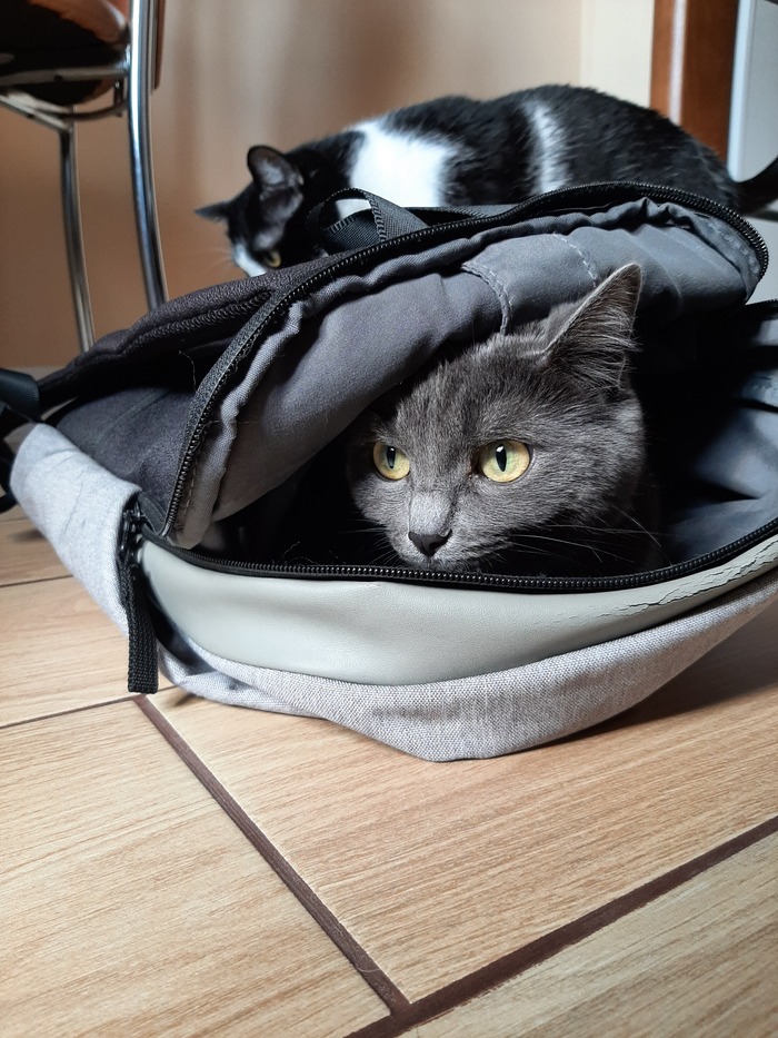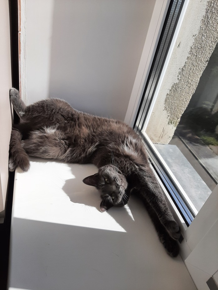 Софа помесь британца неизвестно с кем. В награду за запретную любовь родителей обладает дальнозоркостью, телом длиннее нужного и кривоватыми лапами, посему бегает с топотом, но охотится бесшумно. Любит резиночки и батарею.