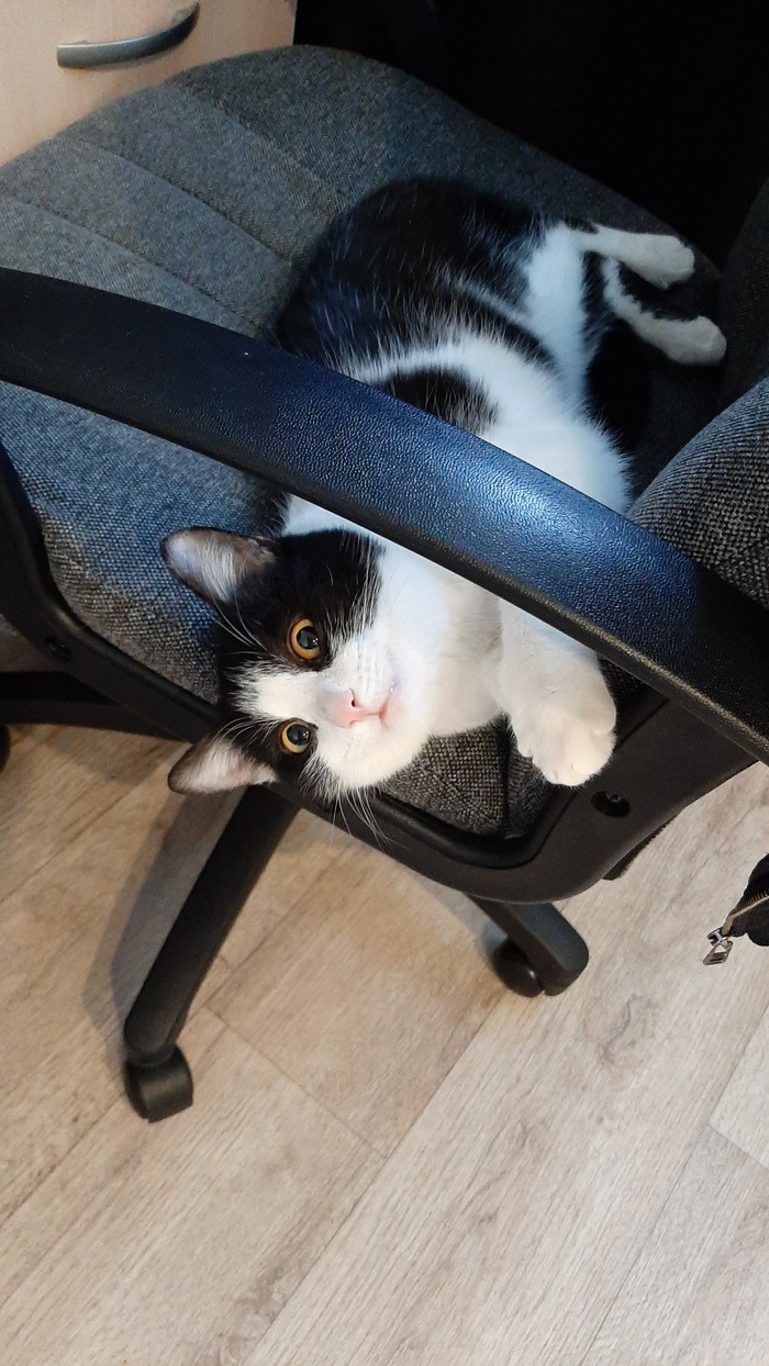 Черно-белый Аякс с излишне длинными задними лапами (садится на 5 точку с грохотом), с проблемами с ЖКТ и перхотью. Обожает чистить уши и массаж перкусионным массажером.