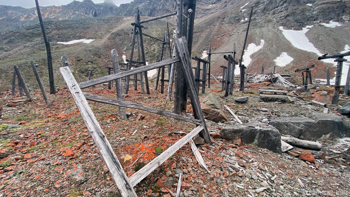 Добычу радиоактивного металла удалось наладить к осени 1949 года, для это в горе было прорублено пять штолен (в нынешнее время они либо засыпаны, либо закрыты ледяными пробками). Недалеко в верхнем лагере, на моренном валу была оборудована компрессорная станция для выработки породы.