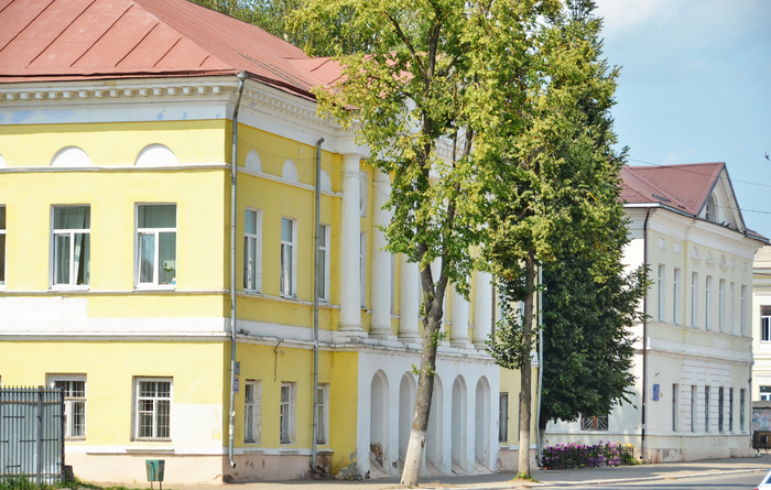 Один из самых ярких храмов города - церковь Сошествия Святого Духа. Она была построена в 1789 году в стиле провинциального барокко на средства купца Петра Минаева. После закрытия в советское время здесь хранили махорку, потом зерно, а уже в 90-х вернули верующим и начали постепенно восстанавливать.