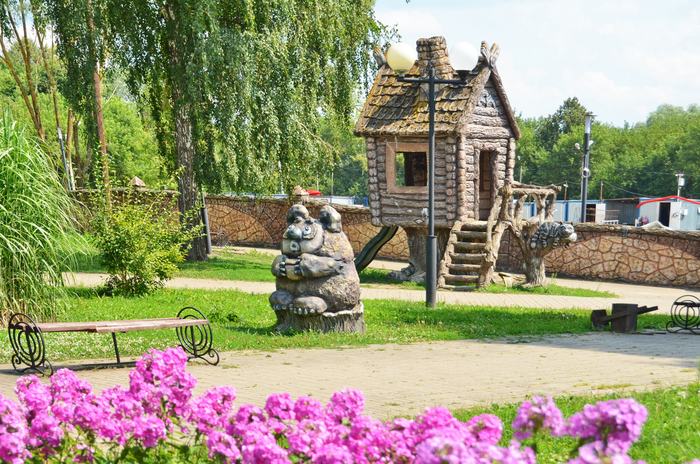 Его главная изюминка - разнообразные затейливые скульптуры, изображающие героев русских сказок и мультфильмов. За годы жизни фигуры в парке стали несколько потрепанными, но не потеряли своего очарования.