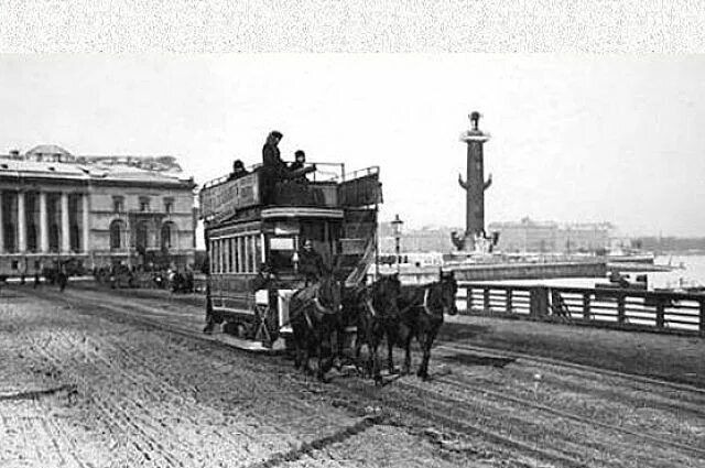 Во второй половине XIX века Петербург разрастался, уличный транспорт (извозчики и омнибусы) уже не вытягивал пассажиропотоки. Инженеры начали предлагать конно-железные дороги: вагон по рельсам тянут лошади.