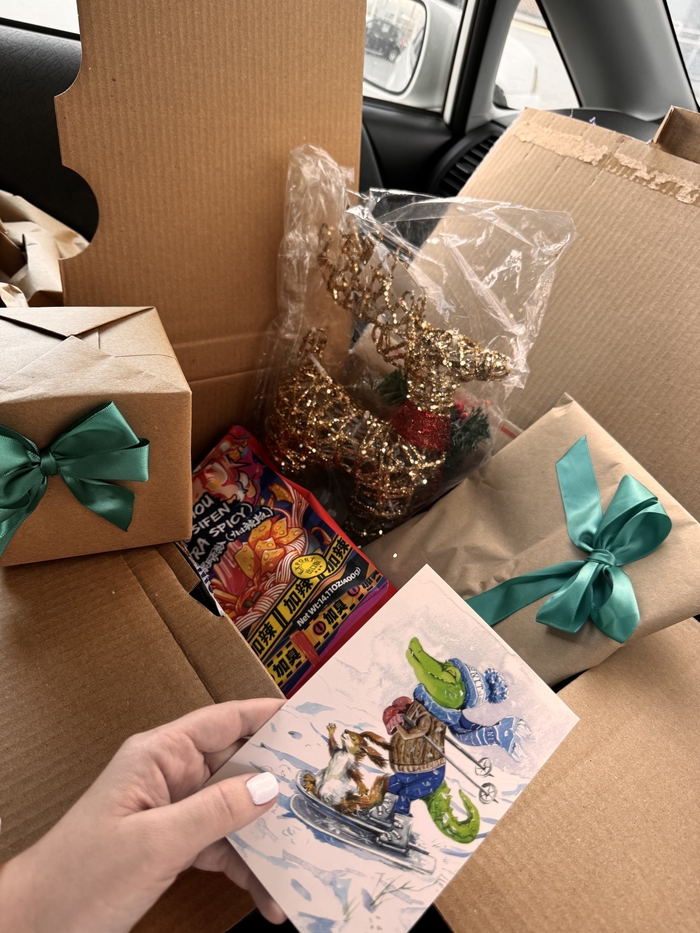 Сегодня я забрала приз - огромную коробку, начала распаковку прям в машине. Я много лет участвую в нг обменах АДМ, но такой трепет, волнение, интерес я испытала впервые. Наверное потому что это для меня оказался реально сюрприз) внутри оказались открытка подписанная от руки и подарки по моим интересам, все в самое сердечко ❤️