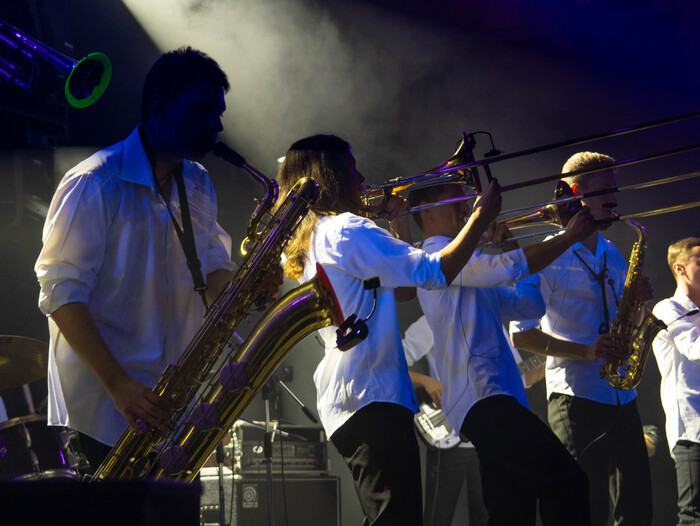 В перерыве между выступлениями можно было послушать инструментальный коллектив с духовыми инструментами. Было ощущение, что находишься на концерте на миллион человек.